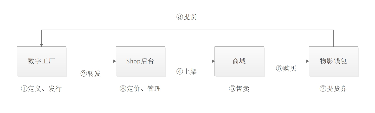 ⑥购买:消费者购买商品的过程,所购买的东西即商家发行的数字凭证,购买行为表示该张数字凭证从商城流转到了用户的物影钱包中。
